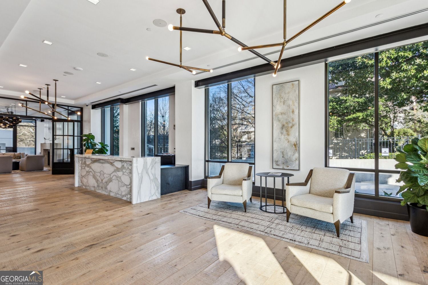 Rare opportunity for resale in the luxurious Graydon Buckhead! Spectacular west facing sunset views provide the perfect backdrop for this pristine residence. Move-in ready with gleaming hardwood floors, 10' ceilings, and handsome decor. Open plan designed for today's lifestyle with floor to ceiling windows from Living Room and Dining Room to expansive 50' private terrace complete with outdoor fireplace and Alfresco gas grill. Designed for entertaining, you'll love the setting overlooking beautiful treescape with Graydon's gorgeous salt water pool and amenity plaza. Chef's kitchen boasts rich custom cabinetry, quartz countertops, spectacular island with waterfall feature and top-of-the-line appliances including SUB ZERO, Wolf, and Asko. Inviting spacious owner's suite with access to outdoor patio and fireside seating area. You'll love the spa-like bath with soaking tub, dual marble vanities, seamless glass shower entry, and custom walk-in closets. Secondary Bedroom includes en-suite bath and access to the private patio. The flexible plan includes a den or home office as well. Additional features include bar area with SUB ZERO beverage cooler , walk-in pantry, and laundry room. The Graydon is nestled in the heart of Buckhead and offers first class amenities with 24-hour concierge 7 days a week, fitness center with state-of-the-art equipment, private spa room, sauna, jacuzzi in the plaza with poolside cabanas, and so much more, including one of the best on-site dog parks in the city! Experience the best of everything in this prime location...just a short walk to Peachtree Battle Shopping Center where you can enjoy upscale dining and shopping. Take a stroll to Duck Pond Park, a serene 2 acre lake a block away. Welcome to Graydon Buckhead! A perfect '10' priced to sell!