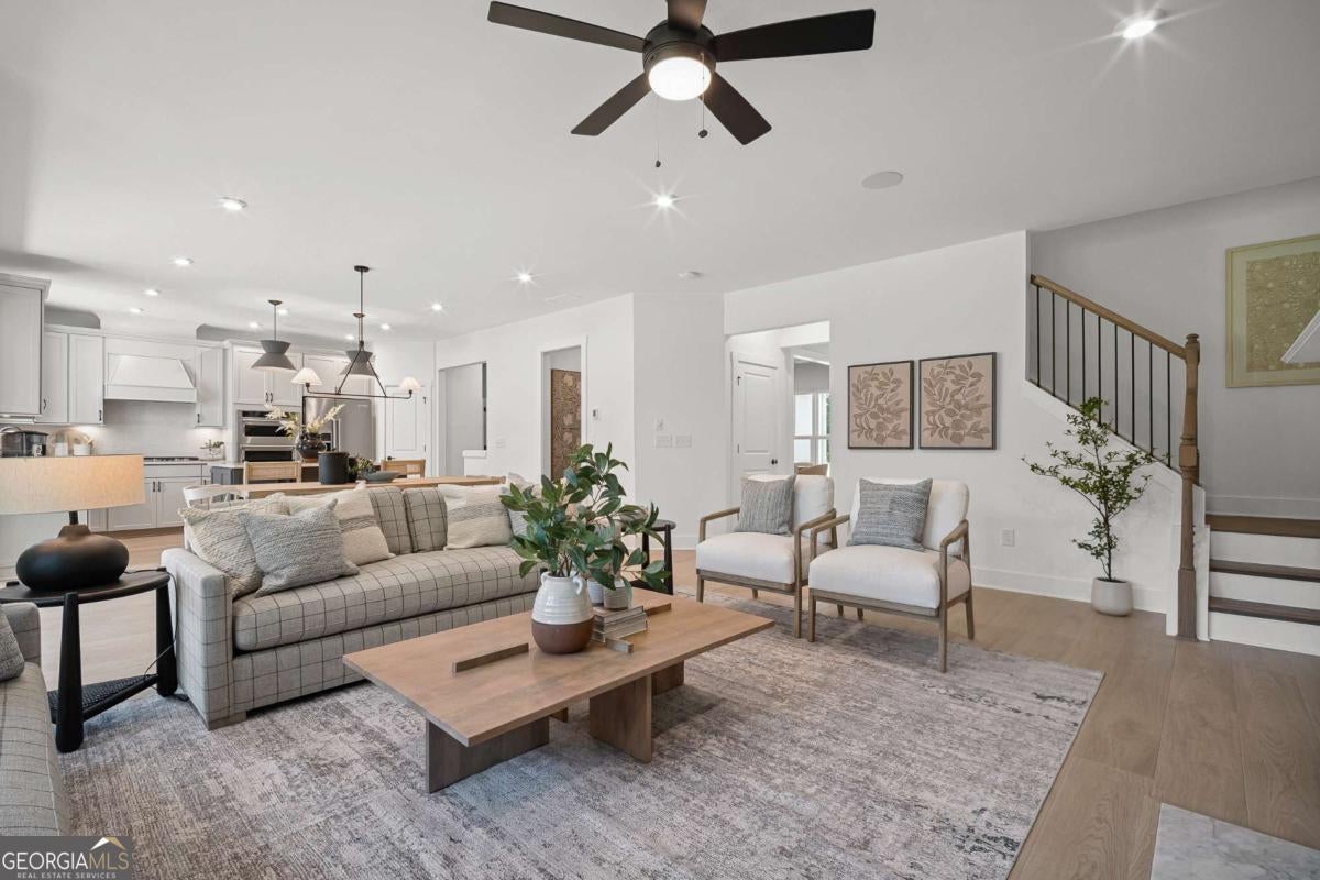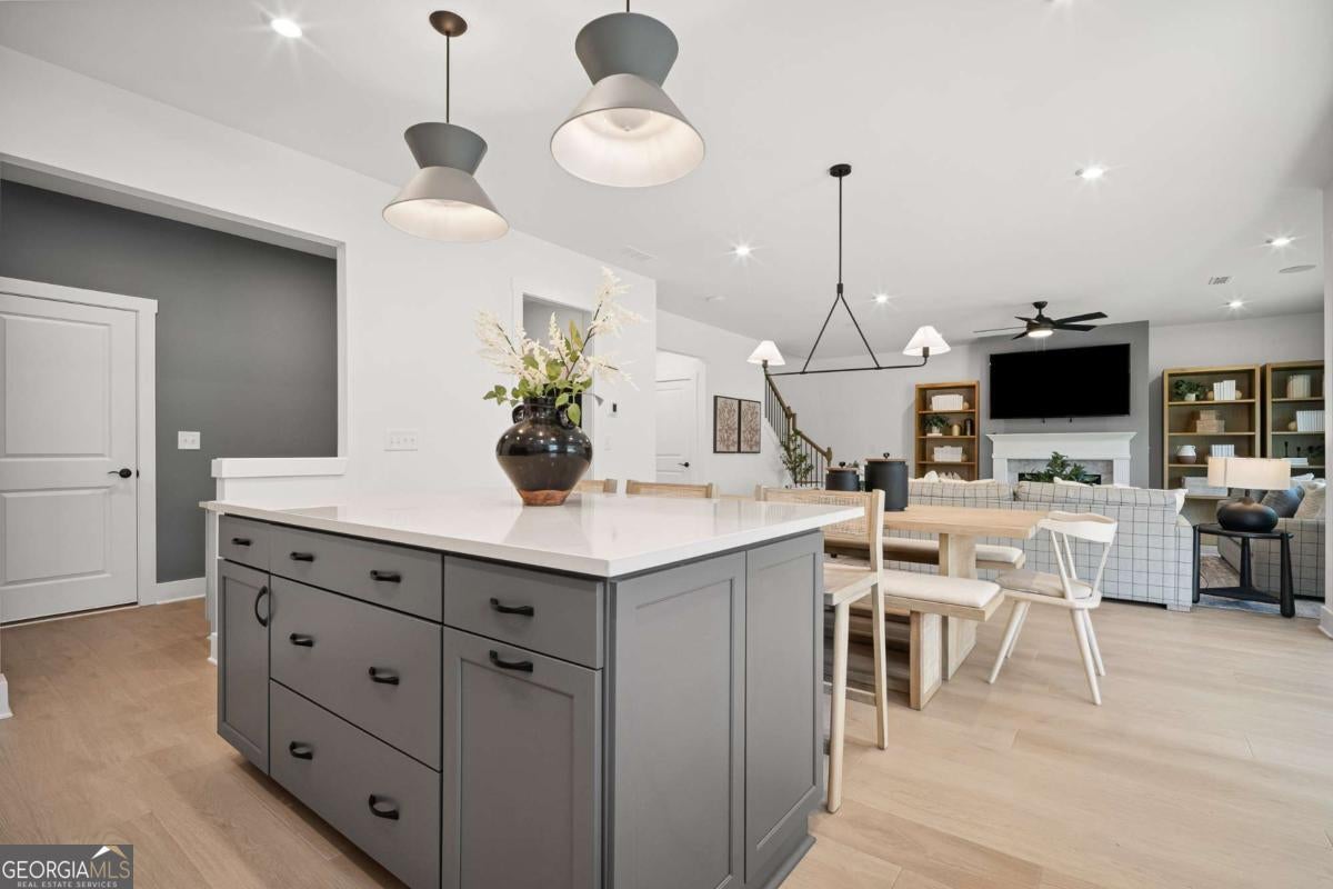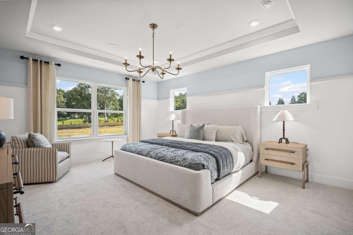 This stunning Wingate floor plan is set on an expansive homesite that fans out generously on all sides, offering exceptional privacy and space between neighbors. A bright sunroom off the kitchen provides the perfect spot to enjoy morning sunlight or extend your entertaining area. Guests will feel right at home with two spacious bedrooms located on the main level. Upstairs, a centrally located loft offers flexible space ideal for a home office, playroom, hobby area, or whatever suits your lifestyle. The Primary Suite is thoughtfully positioned away from the other bedrooms, accessed via a private hallway for added exclusivity. It features a spa-inspired bathroom with dual walk-in closets for added convenience. Three additional bedrooms upstairs ensure privacy for all family members, including one with its own ensuite bath. A third full bathroom with a shared double vanity adds functionality and comfort. Designer touches are found throughout the home, including quartz countertops, a chef's kitchen with a vent hood, and more. The Wingate floor plan delivers an elevated living experience with both style and practicality. Located just minutes from the new Publix shopping center on Matt Hwy, you'll enjoy easy access to dining, specialty shops, GA 400, Cumming City Center, Central Park, and Coal Mountain Town Center-all within a 15-minute drive. This location truly offers convenience to everything you need.